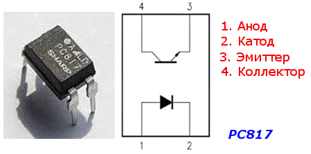 Оптопара (чаще всего, встречается РС817) = светодиод + фототранзистор. Открытие фототранзистора напрямую зависит от степени его освещенности светодиодом. На светодиод нужно подавать постоянное напряжение: