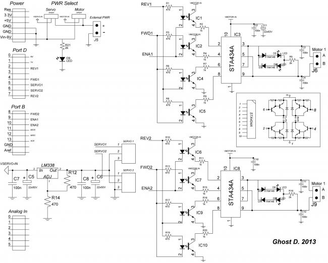 Итак, окончательный вариант схемы LC-Motor Shield v.1.0 ниже…